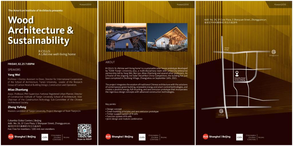 Feb. 25 | AIA Beijing | Monthly Happy Hour + Talk (HH+T):Wood Architecture & SustainabilityOur Monthly Happy Hour + Talk (HH + T) is an interactive social forum, aimed at gathering everyone together to share a drink and talk about architecture! At each session, we invite leading architects and designers to share their projects and experiences covering a specific topic, with ...