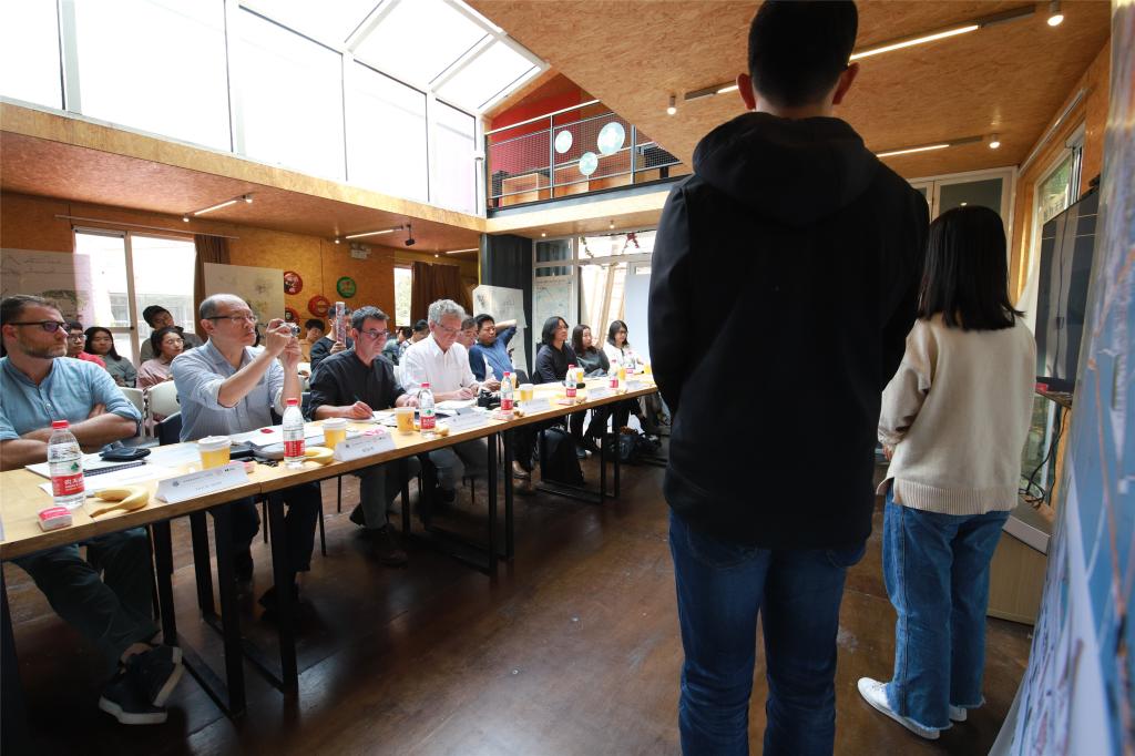 On April 22nd, the workshop held the final review in the container at the School of Architecture. Yuhang Kong, the Executive Vice Dean of the School of Architecture, and the whole teacher team of the workshop, formed a strong panel of critics. The students were divided into six groups and gave presentations on their site cognitive analysis and final projects. Teachers approved students' understanding of the site and the starting points of their projects, appreciated different territory transformation strategies formed in their projects, as well as pointed out the lack of continuity in logic of some students' projects. The students and teachers had a six-hour exchange during the review, which benefited the students a lot. In the end, on behalf of ENSAP Bx, teacher Bernard expressed his recognition of results of the workshop and his gratitude for the organization of our School.