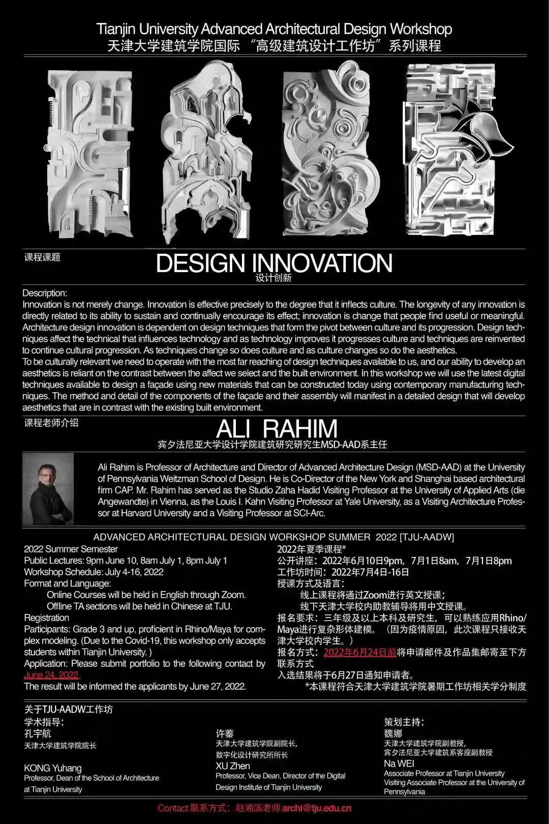 Ali Rahim is Professor of Architecture and Director of Advanced Architecture Design (MSD-AAD) at the University of Pennsylvania Weitzman School of Design. He is Co-Director of the New York and Shanghai based architectural firm CAP. Mr. Rahim has served as the Studio Zaha Hadid Visiting Professor at the University of Applied Arts (die Angewandte) in Vienna, as the Louis I. Kahn Visiting Professor at Yale University, as a Visiting Architecture Professor at Harvard University and a Visiting Professor at SCI-Arc.
