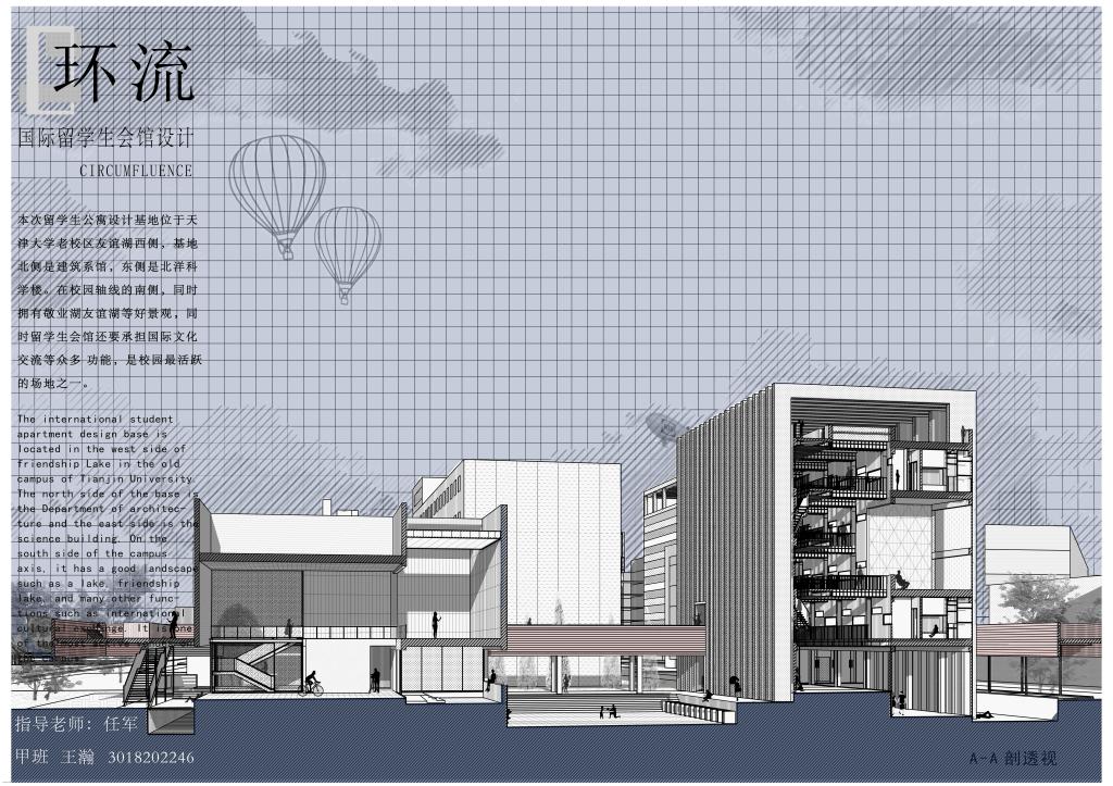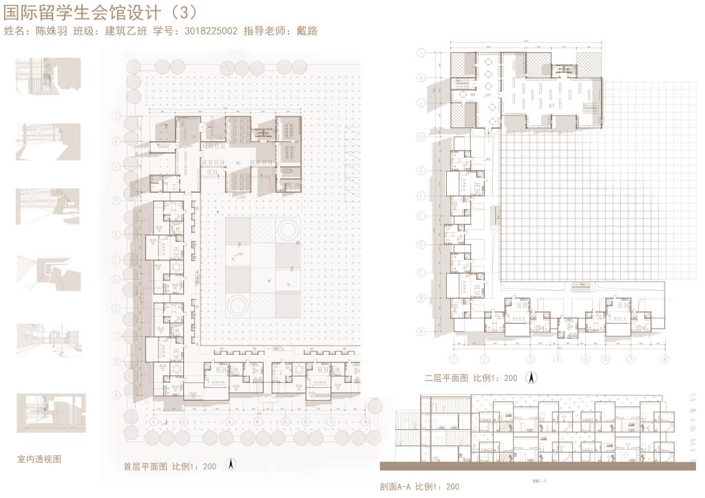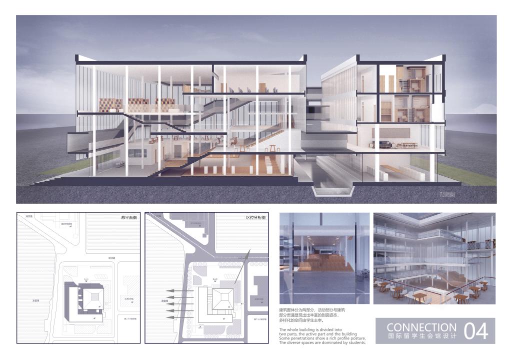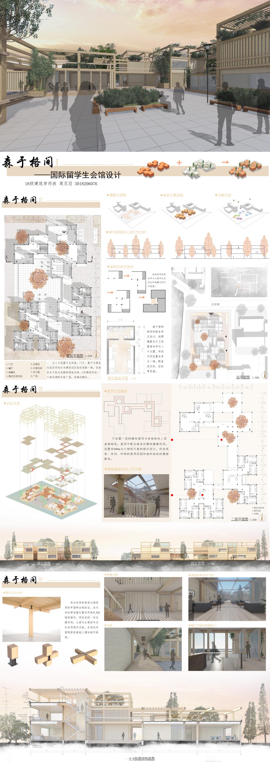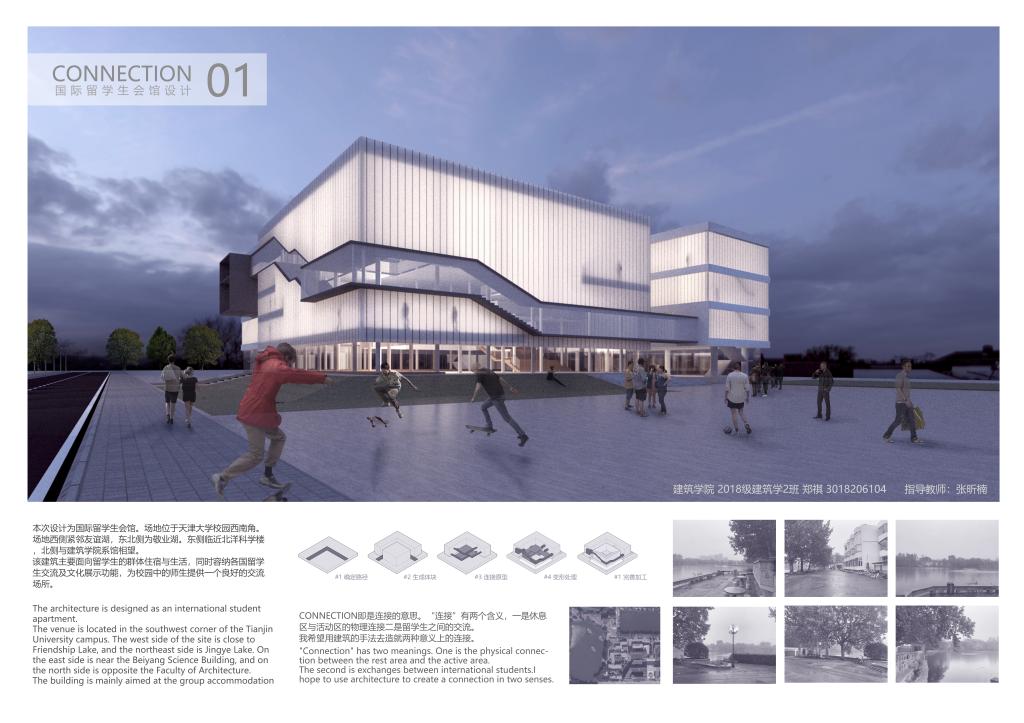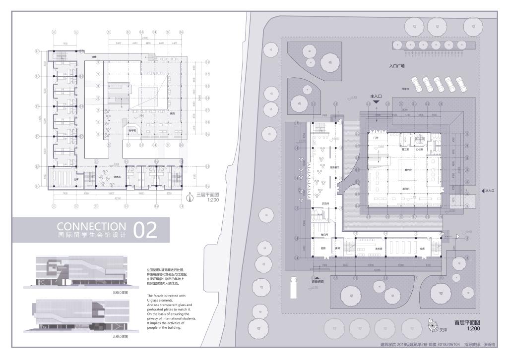 The site of this design brief is on the campus of Tianjin University, in a block for international students and foreign experts. It is a design of International Student Club, which has both a unit layout and a comprehensive function of residence and public building. Part of the communication space is not clearly defined, which is intended to meet the living needs of international students at school and create a relaxed space environment for them to study and communicate. The brief involves site issues such as traffic, landscape boundary condition differentiation, and interfaces coordination between residence and campus teaching, so it is of certain comprehensiveness. In the scheme design, it will take 8 weeks to complete the architectural professional design from partial planning, preliminary design to final drawing. In the teaching process, it emphasizes the development of design habits, design thinking, and the experience of the whole process of architectural design in the guidance of teachers.