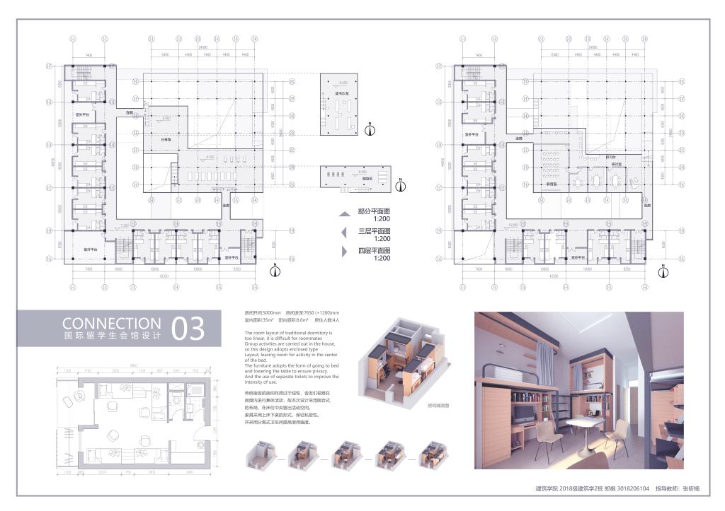 It is a great honor that my instructor is the author of the design topic in this design. Therefore, it is easy for me to understand the implicit information, the integration of Chinese and foreign cultures, and the organization of dormitory units.
