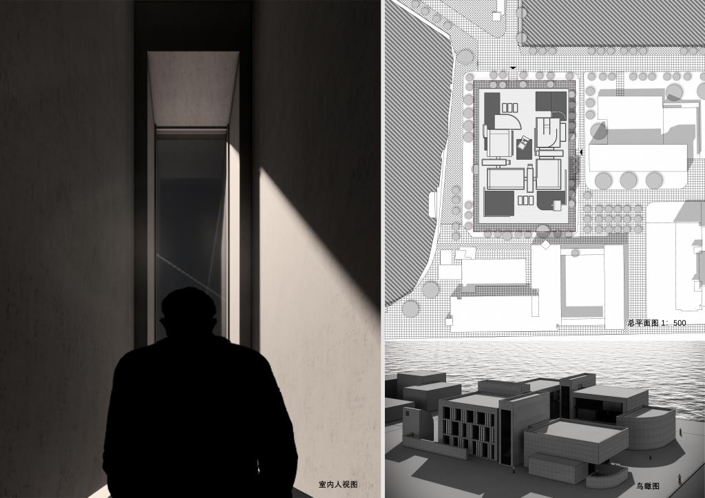 Teacher's suggestion: The story was well told, with a sense of atmosphere. It can bring people into the internal space, with the experience of people as the core. The facade fited the design theme, but the image and the response to the site were a bit rough. The site handling and building volume were simple. The block lacked elasticity and there should be a focus.
