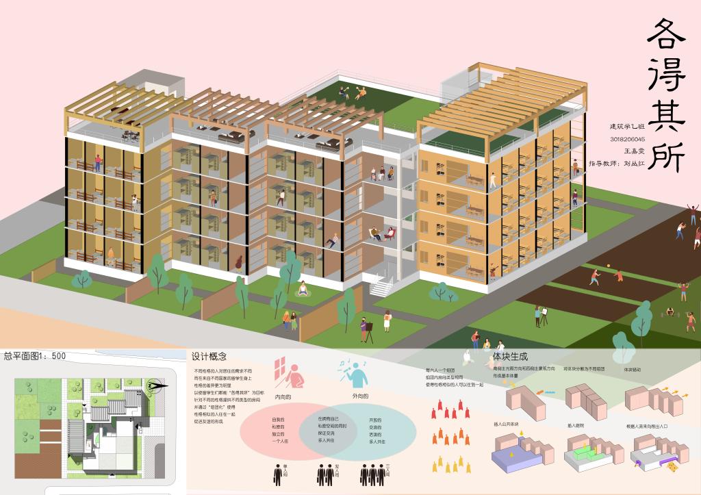 In the design of the Hall of Residence for International Students, I tried the idea of modularity. From the concept, I jumped out of the comfort zone of "organizing blocks according to function". Under the guidance of the teacher step by step, the plan slowly took shape, and also met my own expectations. You can implement your own ideas along the way,then the happiness is self-evident!