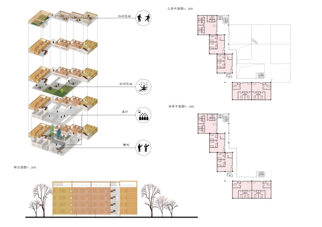 A detailed discussion was made on the living unit, the space and functions were sorted out, and a new dormitory living model was proposed, "8? or 4? or 2? or 1?" Everyone had their own independent space, and 2 people shared one bunk bed in “s” section. 4 people shared a small activity area, and 8 people can set up a flexible partition to share a large space. I hope that through this model, we will reduce dormitory conflicts and encourage exchanges.