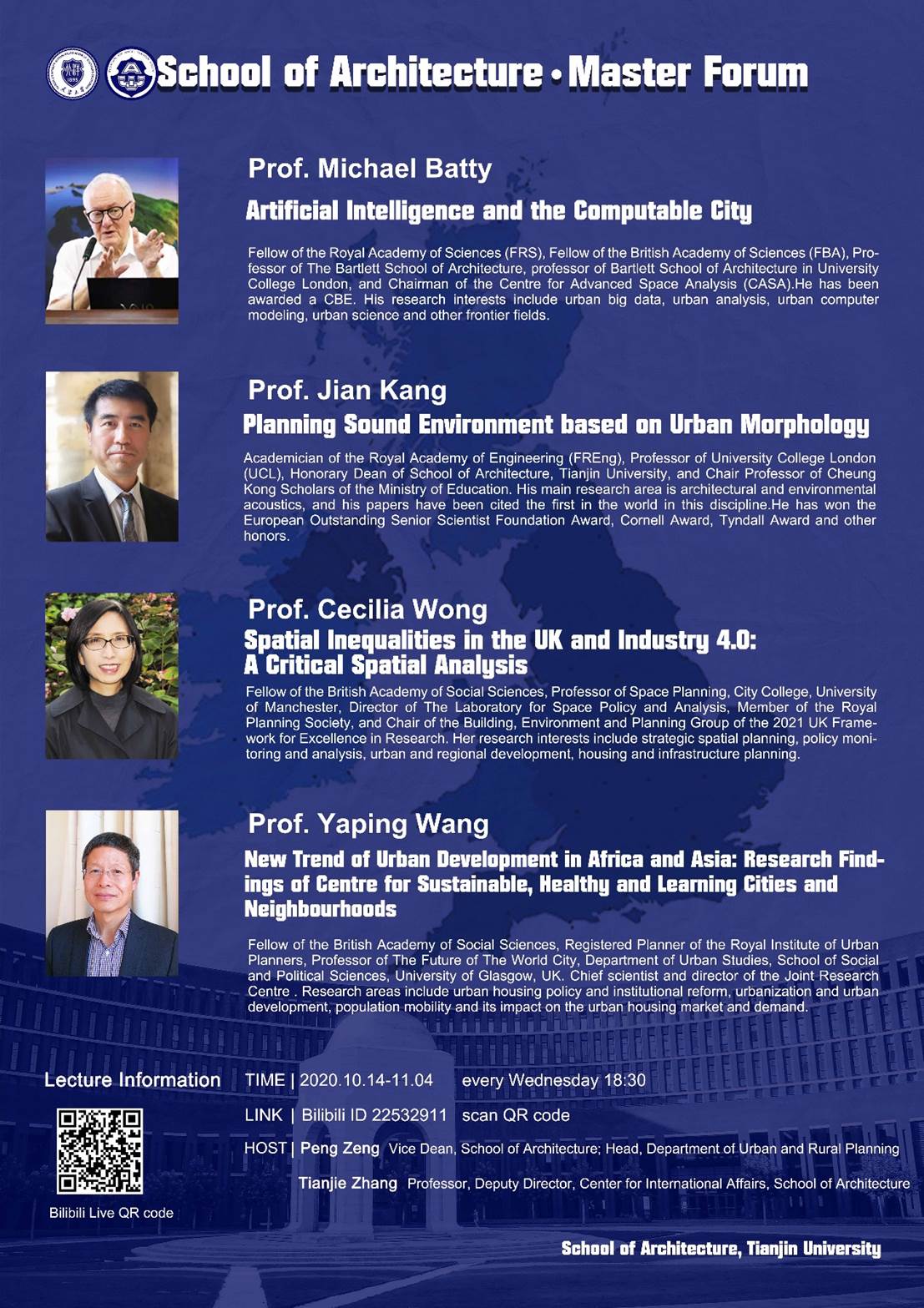 Correspondingly, School of Architecture, Tianjin University will hold a Master Forum, and invite four UK academicians from the Royal Academy of Sciences, The Royal Academy of Engineering, the British Academy of Sciences and the British Academy of Social Sciences to give cutting-edge lectures and inspiring discussions.