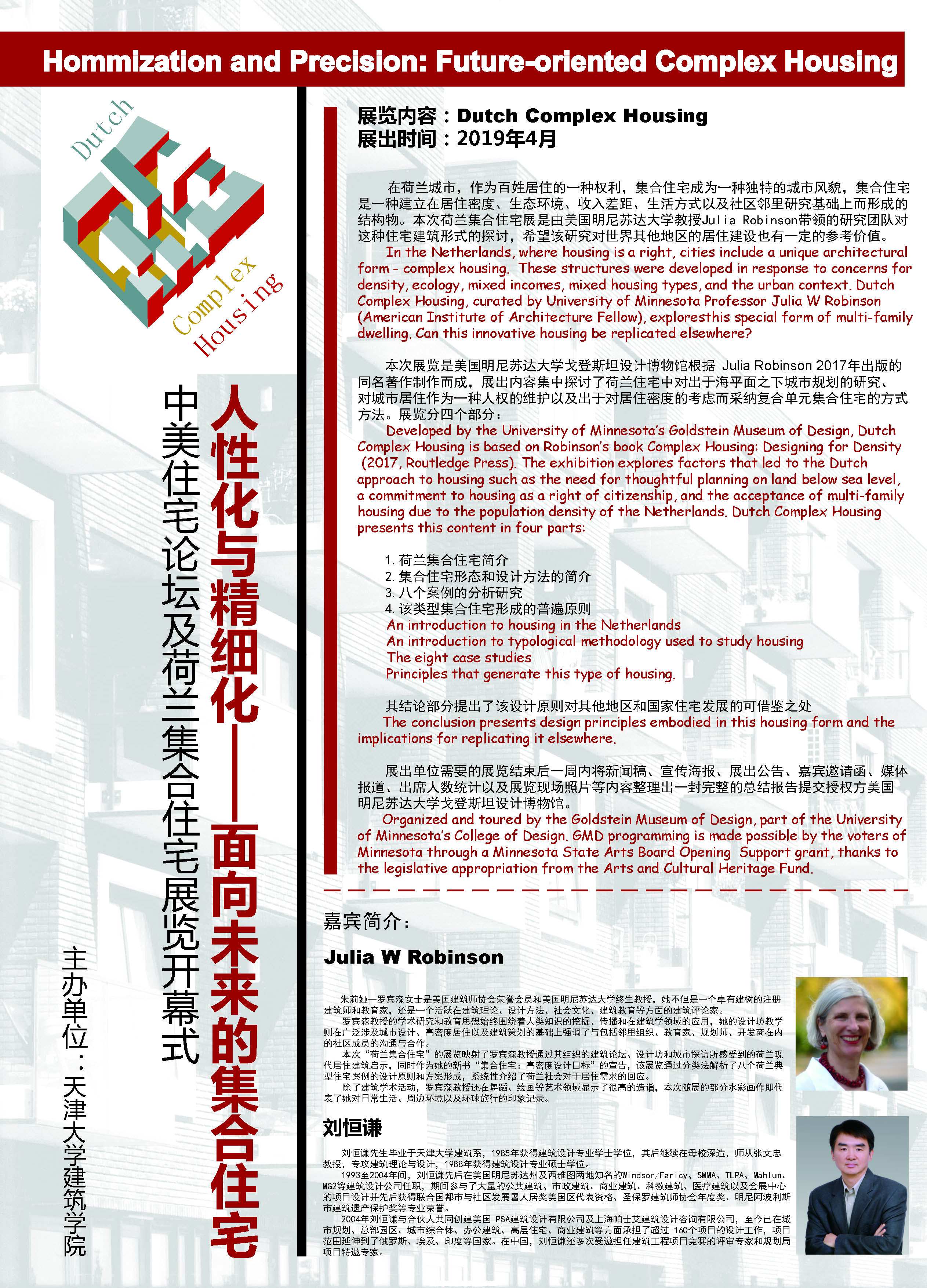 In the Netherlands, where housing is a right, cities include a unique architectural form - complex housing. These structures were developed in response to concerns for density, ecology, mixed incomes, mixed housing types, and the urban context. Dutch Complex Housing, curated by University of Minnesota Professor Julia Robinson (American Institute of Architecture Fellow), explores this special form of multi-family dwelling. Can this innovative housing be replicated elsewhere?
