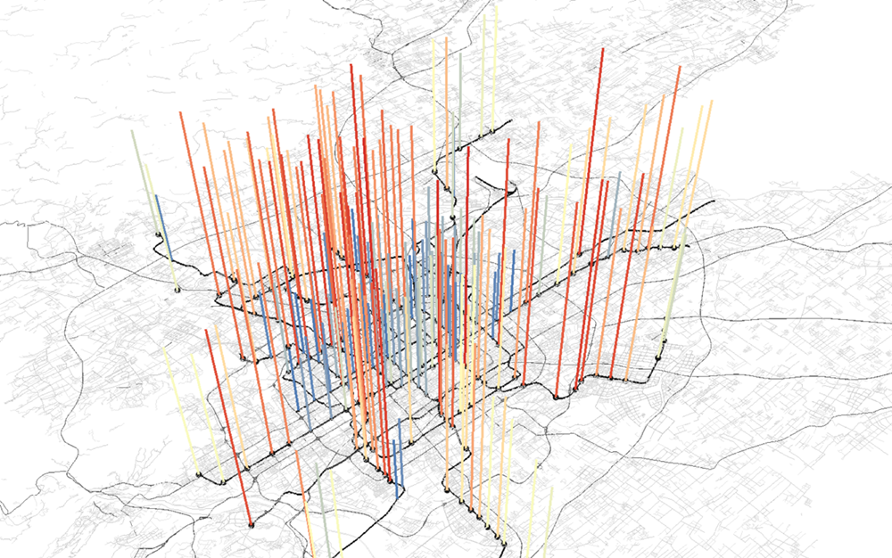 Fig 19:Students’ work of GIS software course for undergraduates: integrated living pressure/attractive index of Beijing metro station regions by big data analysis