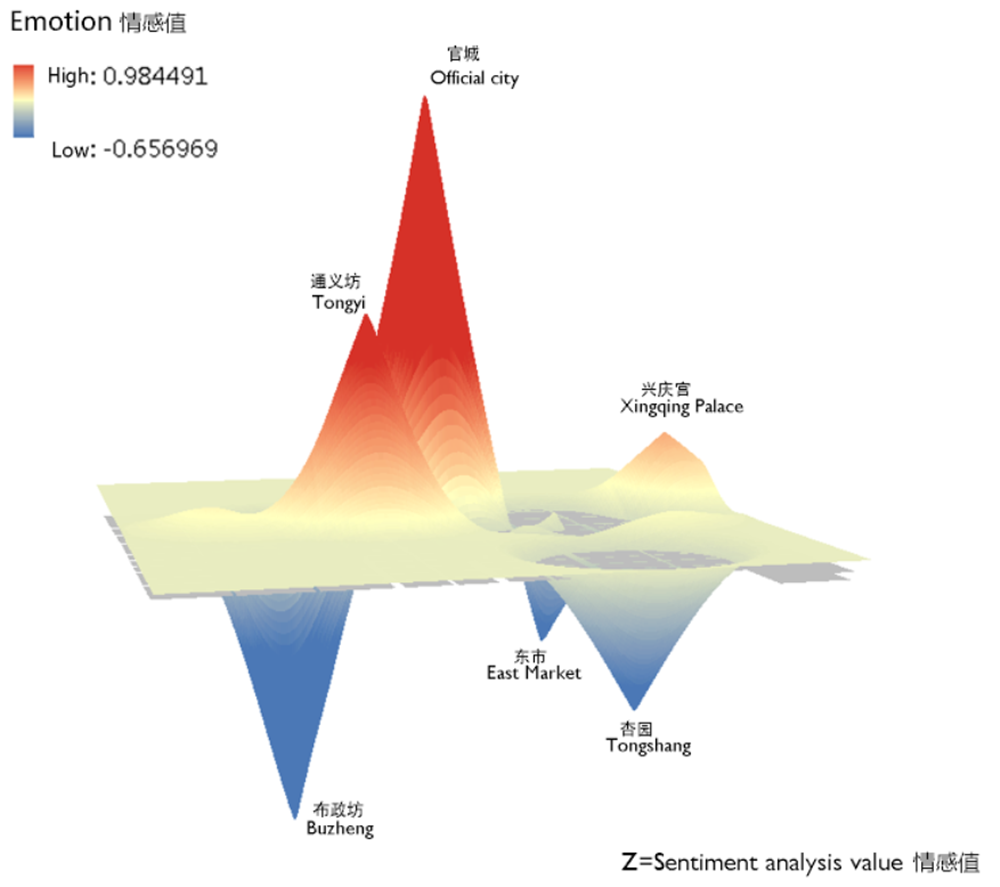 Fig 17:Cognitive emotion map of Chang’an city from text mining of the novel The Tale of Liwa in Tang Dynasty