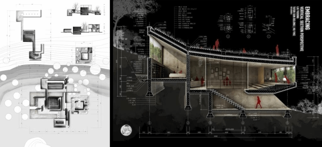 Fig 25:Student work of architectural perspective section and exploded axonometric