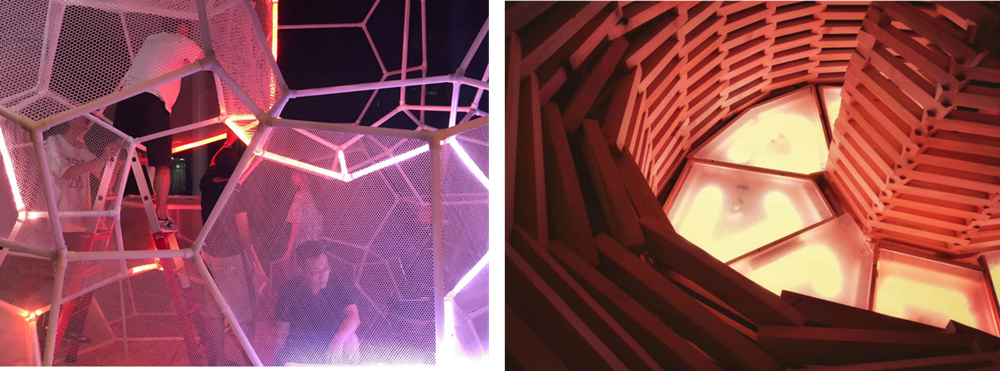 After years of practice, TJU has formed its unique teaching and research direction in interactive architecture. We research small-scale variable design based on graphicsand human behaviors, we also study and realize the interactive programming between sensors and mechanical devices.With the input of big data and portable device, we design corresponding spatial algorithm and intelligent components to make more humanized architecture.
