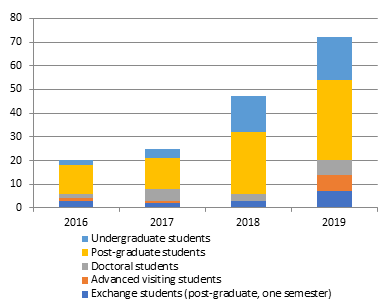 Our international students mostly come from Asia, Africa, Eastern Europe, America, Russia, etc; every year, the School accepts an average of 5-6 exchange students from France, Italy, and Spain, among other EU nations.