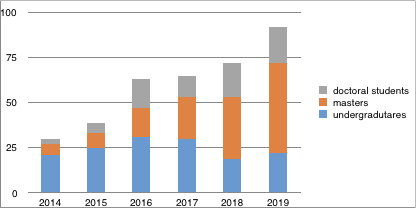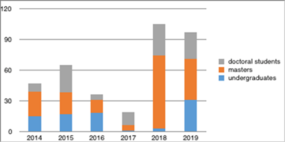 Number of Students Who Studied >3 Months at Foreign Institutes from 2014 to 2019