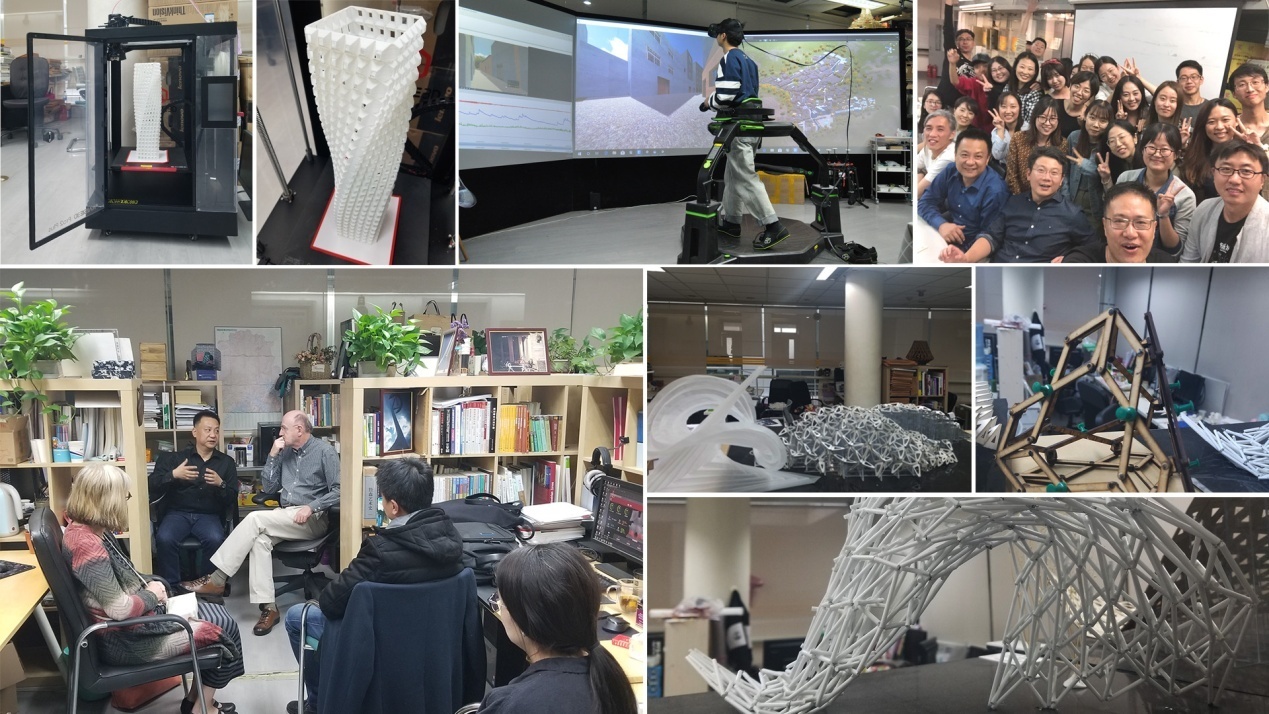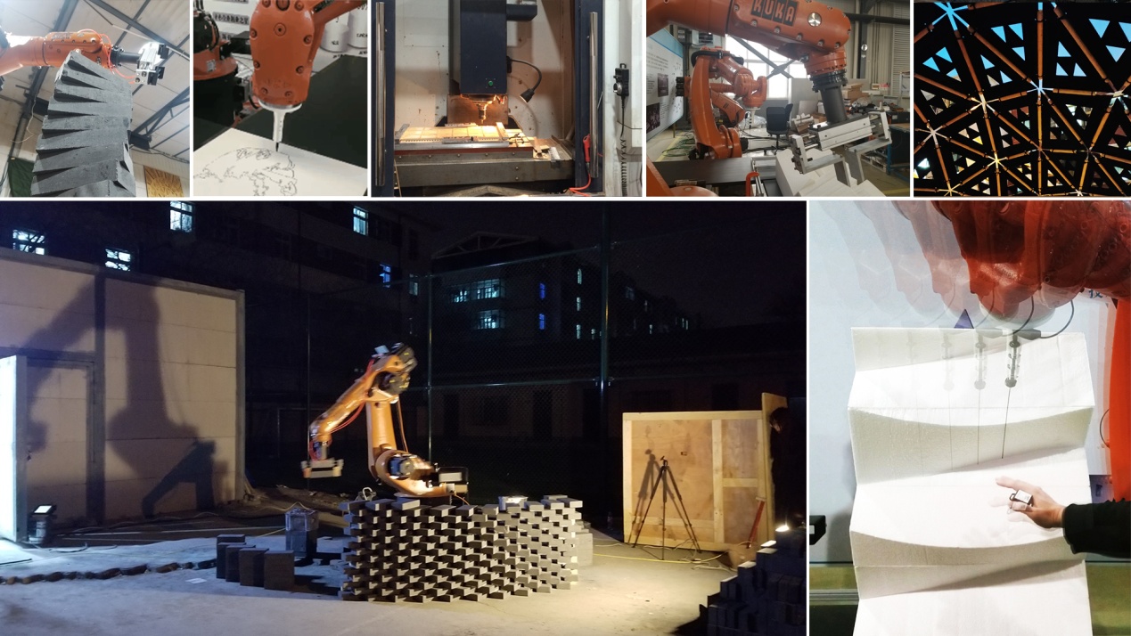 Our digital design experimental facility includes a teaching area and research office, a digital fabrication laboratory, and a robot numerical-control fabrication laboratory, with an overall floor space of 550 m2. We are equipped with a three-dimensional graphics workstation, network server, virtual reality environment, 3D printers, a computer numerical-control (CNC) machine, KUKA robotic arms, laser-cutting machines, self-assembled drones, and more.