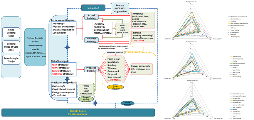 Facing a huge amount of existing office buildings with aging structure, poor comfort, obsolete equipment, high energy consumption and other issues. The current research still lacks the trade-off judgments of the retrofit measures and quantitative analysis of the comprehensive improvement of multiple performance targets in the early design stage. The existing office buildings in cold area are selected as the research object in this research program. By use of building performance simulation tools and building performance optimization algorithm as the main technical means, this research focuses on the Sensitivity Model of office building retrofit in the early design stage. Based on the field research and case study of the influence mechanism for building performance, the design strategies of green retrofit for existing office buildings are proposed. Then, this research presented a working procedure that is employed in the decision-making process of office building retrofits in China from an architect’s perspective, coupling multiple performance targets. Following a genetic optimization logic, the retrofit strategies are served as the variables, environmental comfort indicators and energy consumption indicators are served as objective functions, and the incremental costs are served as constrains. “Multi-variate exhaustiveness” and “Multi-objective optimization" sensitivity prediction model are established. The research results of the project will provide the scientific basis for the optimization of the strategic measures in the existing residential buildings, and provide guiding significance and design logic to both of the performance-oriented retrofit practice and architectural form innovation.