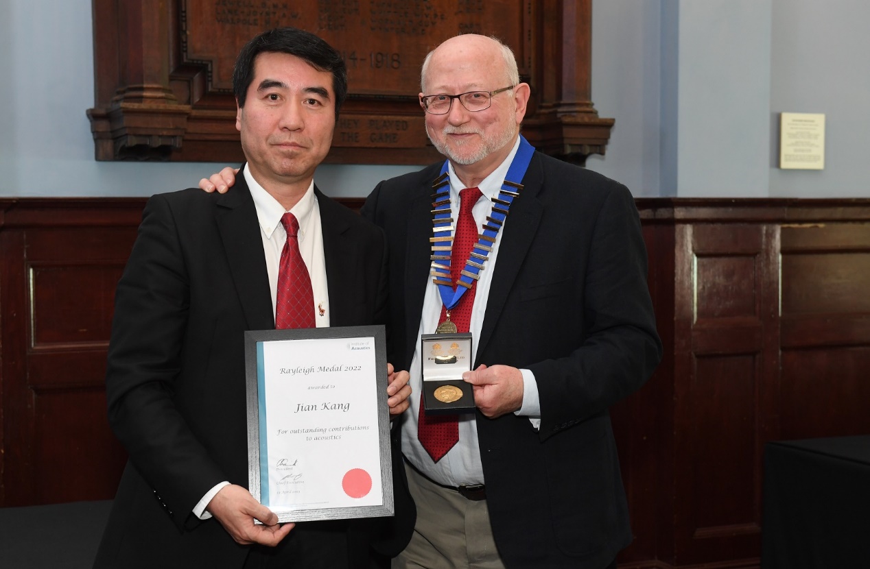 Professor Kang Jian, Honorary Dean of our School's School of Architecture, Fellow of the Royal Academy of Engineering in the UK, and Fellow of the European Academy of Sciences, has been awarded the Royal Medal by the British Acoustics Society. The Royal Medal is the highest award of the British Acoustics Society, presented to renowned scholars worldwide who have made outstanding contributions to the field of acoustics. The medal is named after Lord Rayleigh, who served as the President of the Royal Society (British Academy of Sciences) and received the Nobel Prize in Physics in 1904. Previous recipients of the Royal Medal include aviation acoustics pioneer Sir Lighthill, classical architectural acoustics giant Beranek, and former president of the American Academy of Arts and Sciences Beranek.