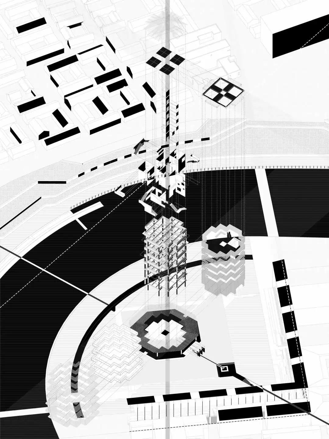 The planning regulations for industrial land parcels requires no commercial uses such as shops or retails in an technology industrial park, which resulted in lack of commercial activities in and outside of these parks. Blocks of office parks are separated from one another and become isolated islands without enough pedestrian activities that is key to urban amenity. The studio focused on a 96 mu land parcel that is to be used for a space technology office park. The initiative is to open up the office park to the city and trigger links among different industrial parks would generate a much more lively and amicable urban environment that nurtures creativity needed for research and technology advancement.