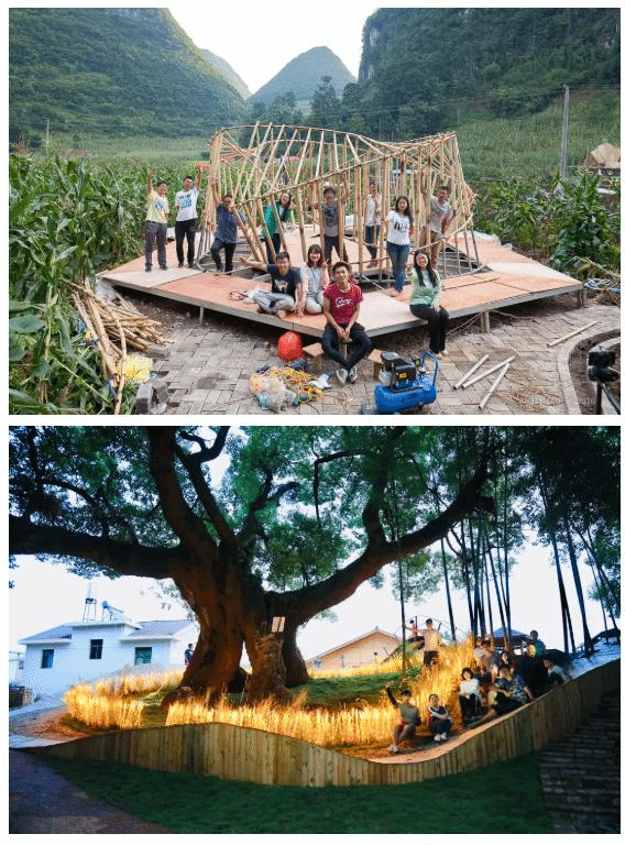 In 2016, the "Bamboo Regal Domain" was built in the Louna Village, Guizhou Province, focusing on "constructive aesthetics"; in 2017, the "Bamboo Dome" was built in Anji, Zhejiang Province which emphasized more on functions; in the same year, a home-stay was built in the Longdongbao Village, Sichuan. This “Blossoms‘ Cottage Cinema" focuses on the construction of tourism service facilities; in 2018, the "Xiamutang Dance" landscape project was designed and built in the Xiamutang Village, Jiangxi, to promote the development of rural tourism; and meanwhile, a more industrialized construction experiment was carried out through the "Xiamutang Glimmer" project. In 2019, Tianjin University and the Oslo School of Architecture and Design launched the "AHO-TJU International Construction Course" to comprehensively cultivate students' ability from planning, design and construction, and to the later maintenance, operation and management, and the organizational ability to coordinate all parties in the process. Post 2020, the launching of project "R-CELLS: A Lifetime of Healthy and Sustainable Home" in the Desheng Village, Zhangbei County implemented a more practical and proactive perspective which further integrated renewable energy and smart technologies with the development of rural industries and a series of sustainable development issues in rural revitalization.