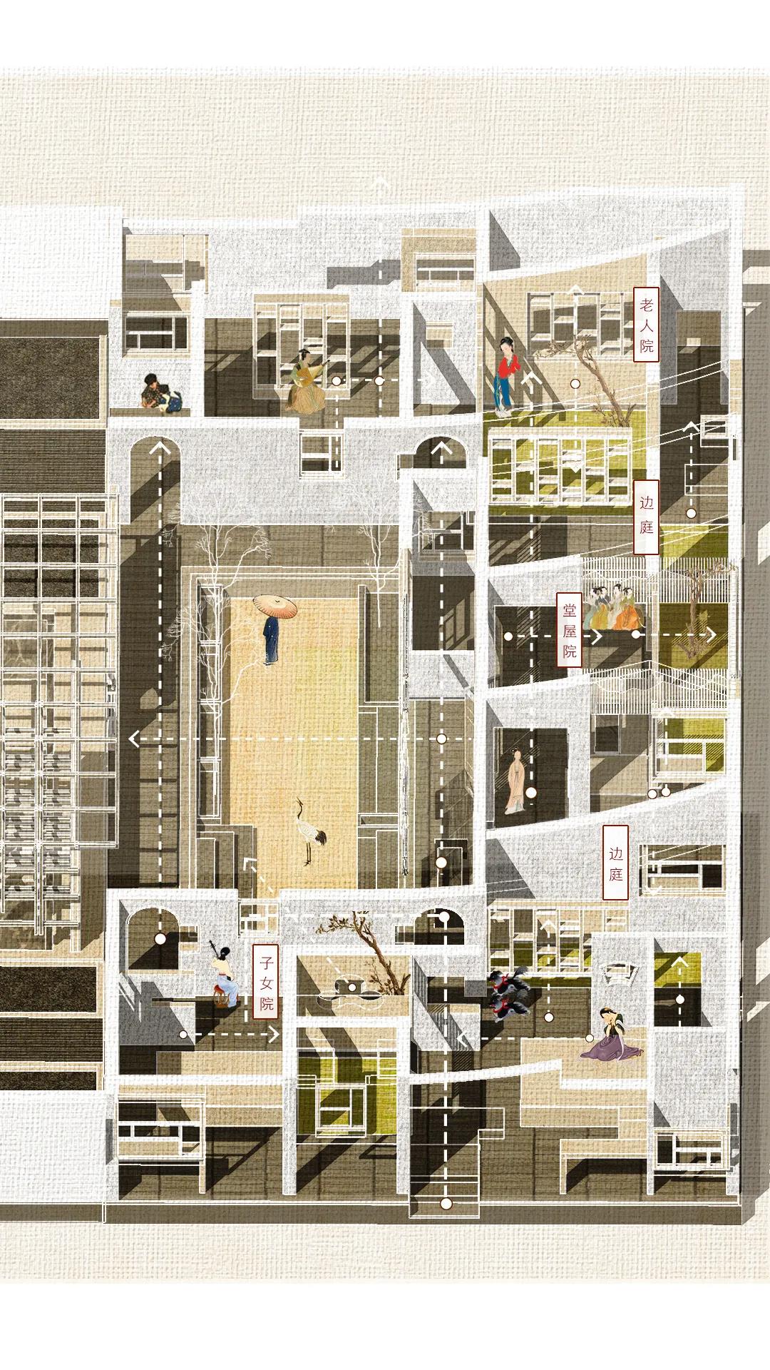 The independent world in the courtyard is an important carrier of Chinese traditional culture. "Yuan of 3" takes the Jianfu Palace Garden site in the Forbidden City as the ideal base, and includes three different scales of courtyards: "Micro-yard", "Family-yard" and "Social-yard", responding to the different life patterns that may emerge in Chinese families in the future.